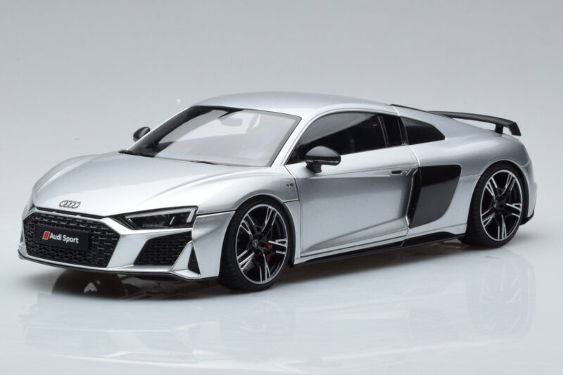 A 1:18 scale model measures approximately 25-28 cm (approximately 10-11 inches). The Audi R8 Performance Stříbrný Kengfai 1:18 is perfect for display in a glass cabinet or on a shelf.