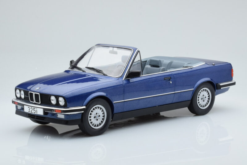 The BMW 325i E30 Kabriolet Modrý MCG 1:18 is crafted from Kov. Die-cast zinc alloy body with detailed plastic parts, rubber tires, and high-quality paint finish. Die-cast models are known for their weight, durability, and realistic feel.