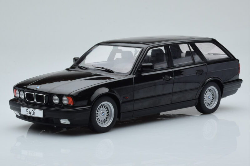 The BMW 540i E34 Touring Černý Metalický MCG 1:18 is crafted from Kov. Die-cast zinc alloy body with detailed plastic parts, rubber tires, and high-quality paint finish. Die-cast models are known for their weight, durability, and realistic feel.