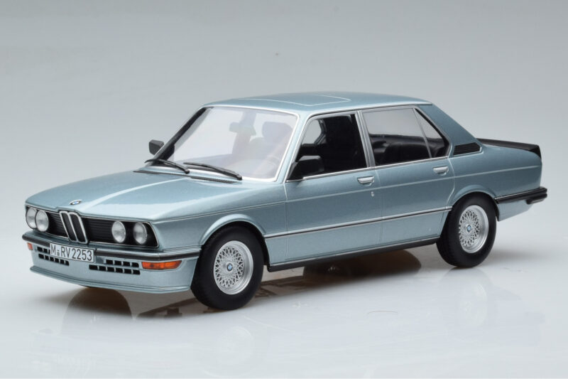The BMW M535i E12 Modrá Norev 1:18 is crafted from Kov. Die-cast zinc alloy body with detailed plastic parts, rubber tires, and high-quality paint finish. Die-cast models are known for their weight, durability, and realistic feel.