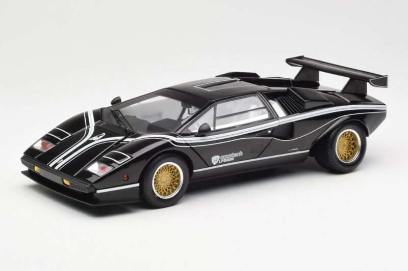 The Lamborghini Countach LP 500R Černý Kyosho 1:18 is crafted from Kov. Die-cast zinc alloy body with detailed plastic parts, rubber tires, and high-quality paint finish. Die-cast models are known for their weight, durability, and realistic feel.