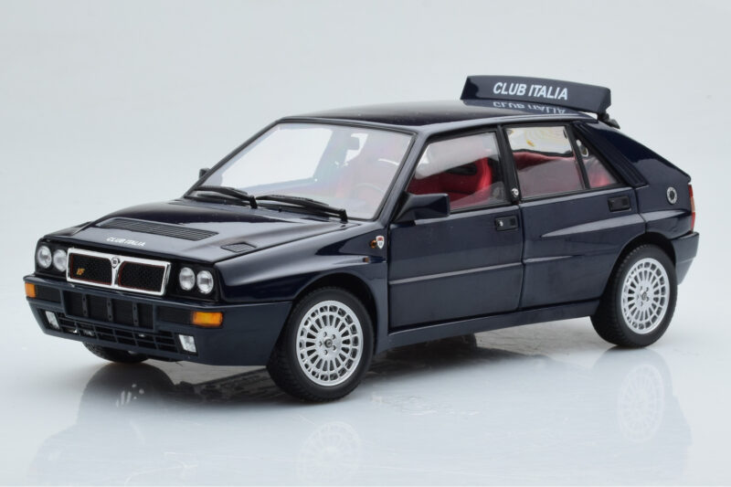 The Lancia Delta HF Integrale Club Italia Modrý Kyosho 1:18 is crafted from Kov. Die-cast zinc alloy body with detailed plastic parts, rubber tires, and high-quality paint finish. Die-cast models are known for their weight, durability, and realistic feel.