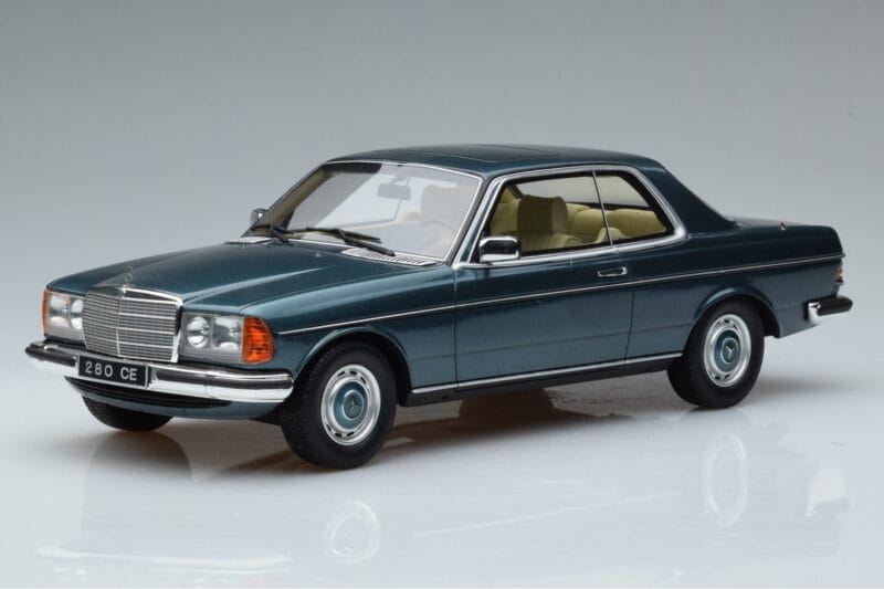 A 1:18 scale model measures approximately 25-28 cm (approximately 10-11 inches). The Mercedes 280 CE C123 Modrý Otto 1:18 is perfect for display in a glass cabinet or on a shelf.