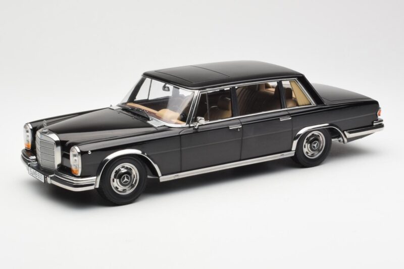 The Mercedes 600 SWB W100 Černý KK-Scale 1:18 is crafted from Kov. Die-cast zinc alloy body with detailed plastic parts, rubber tires, and high-quality paint finish. Die-cast models are known for their weight, durability, and realistic feel.
