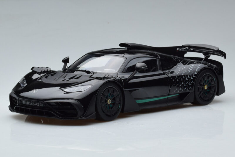 The Mercedes AMG One Černý NZG 1:18 is crafted from Kov. Die-cast zinc alloy body with detailed plastic parts, rubber tires, and high-quality paint finish. Die-cast models are known for their weight, durability, and realistic feel.