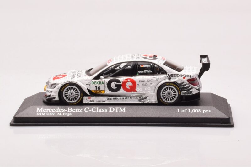 The Mercedes C-Class W204 DTM GQ AMG Mercedes #16 Engels DTM 2009 Minichamps 1:43 is crafted from Kov. Die-cast zinc alloy body with detailed plastic parts, rubber tires, and high-quality paint finish. Die-cast models are known for their weight, durability, and realistic feel.