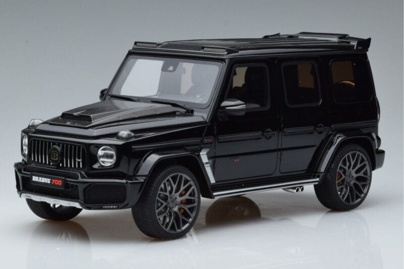 The Mercedes G63 Brabus 700 Widestar W463 Perleťová Černá GT Spirit 1:18 is crafted from Pryskyřice. High-quality resin with hand-painted details and limited production runs. Resin models offer exceptional detail and are prized by serious collectors for their craftsmanship.