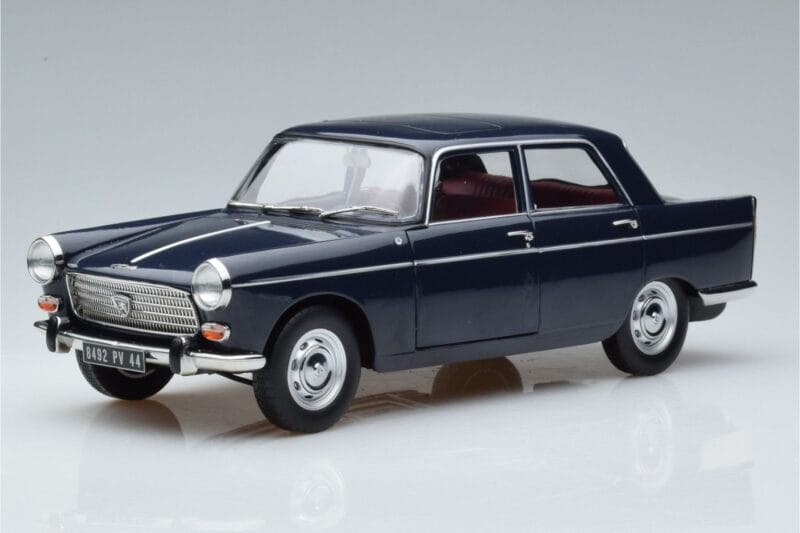 The Peugeot 404 Modrý Norev 1:18 is crafted from Kov. Die-cast zinc alloy body with detailed plastic parts, rubber tires, and high-quality paint finish. Die-cast models are known for their weight, durability, and realistic feel.