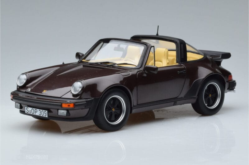 The Porsche 911 964 Turbo Targa Hnědý Norev 1:18 is crafted from Kov. Die-cast zinc alloy body with detailed plastic parts, rubber tires, and high-quality paint finish. Die-cast models are known for their weight, durability, and realistic feel.