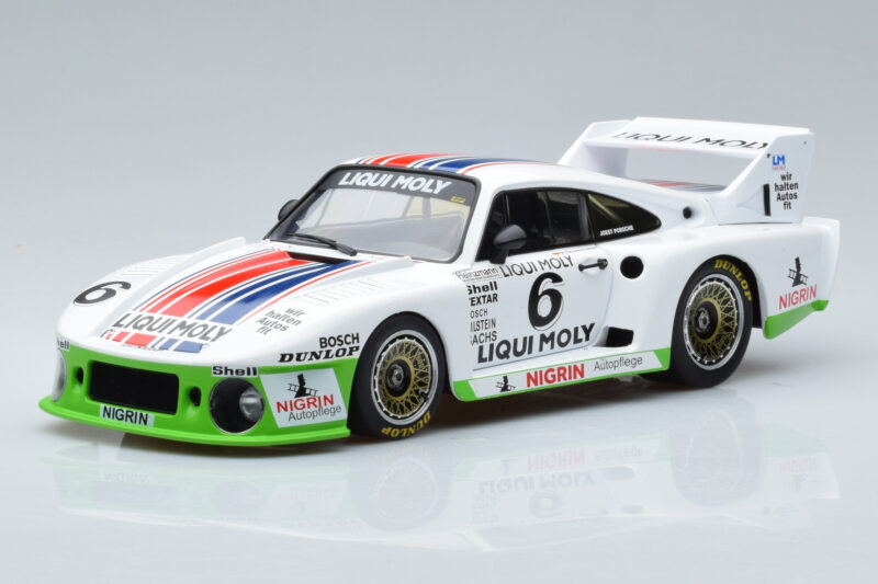 The Porsche 935J #6 Liqui Moly Spa-Francorchamps DRM 1980 MCG 1:18 is crafted from Kov. Die-cast zinc alloy body with detailed plastic parts, rubber tires, and high-quality paint finish. Die-cast models are known for their weight, durability, and realistic feel.